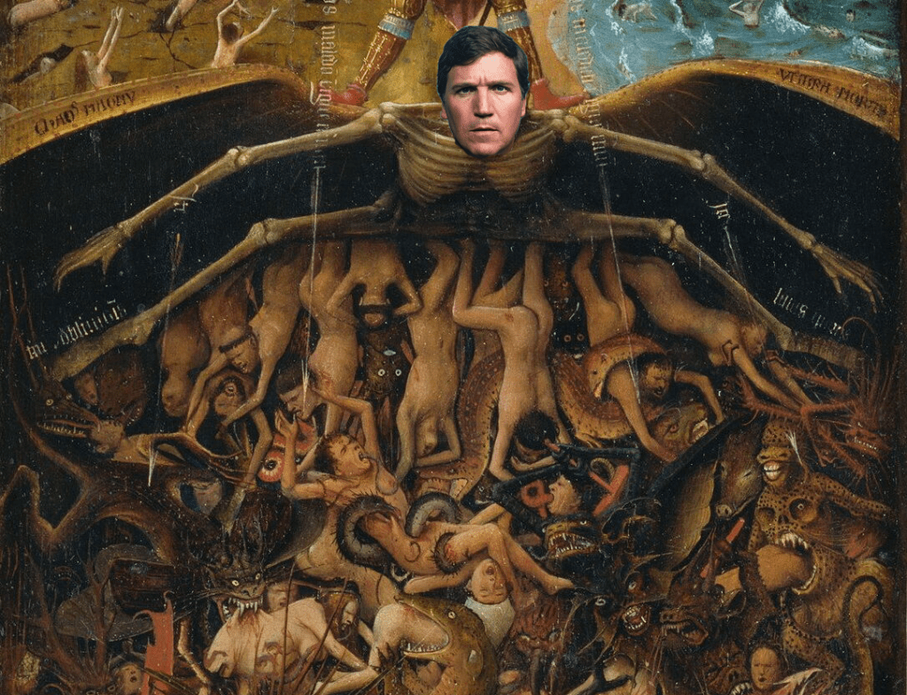 According to our own fiendish reporter, Tucker Carlson’s private inferno includes: